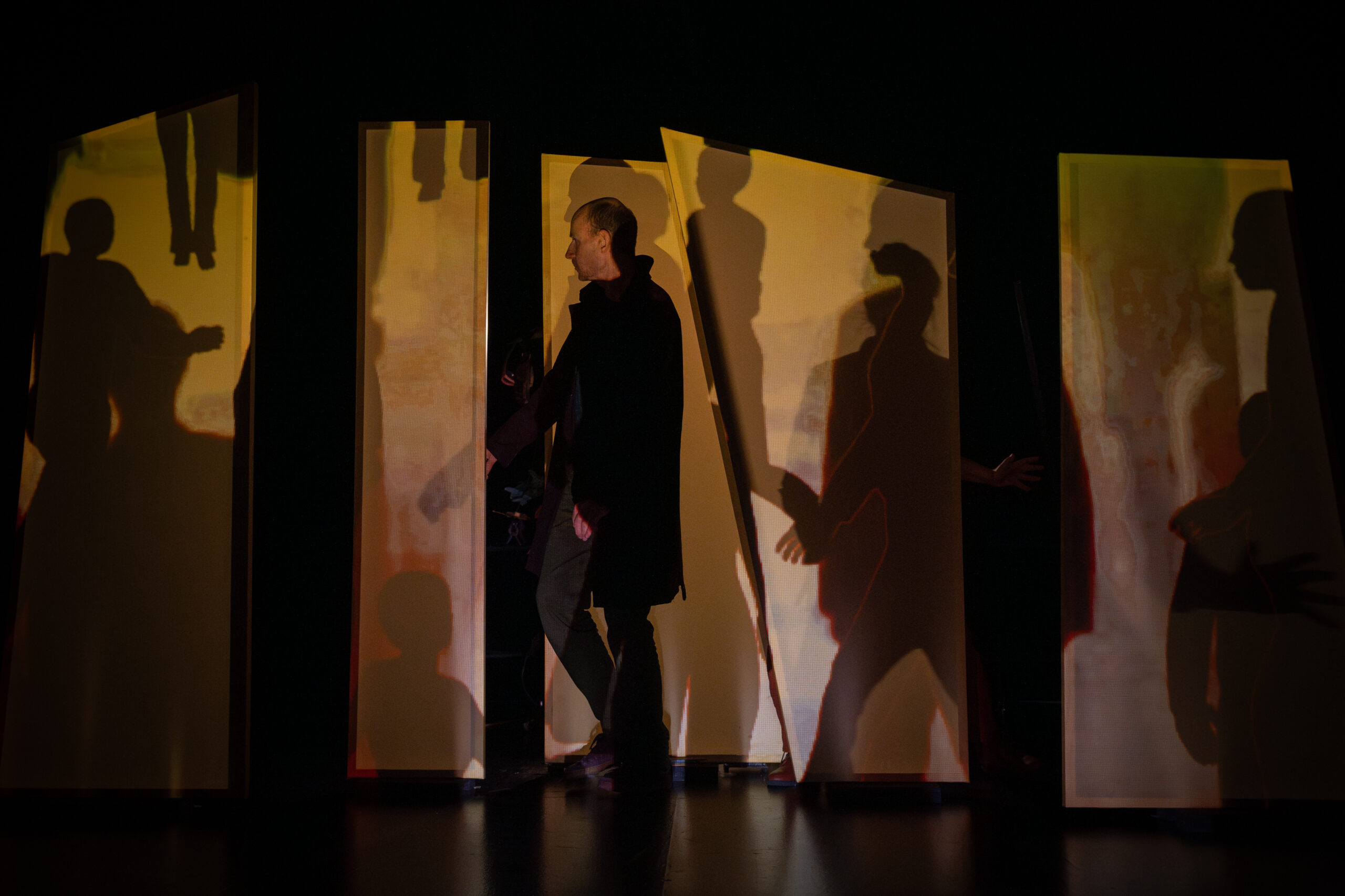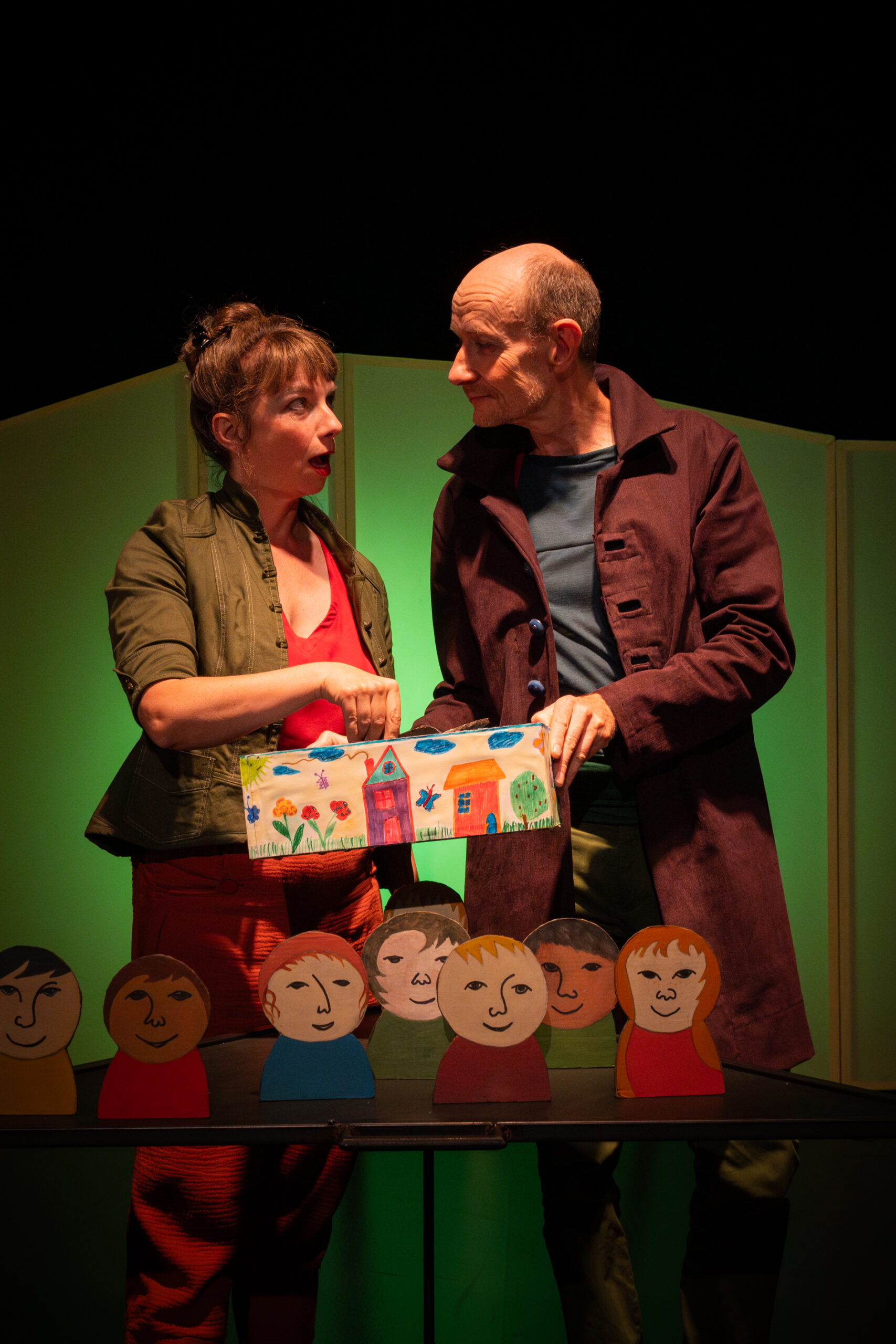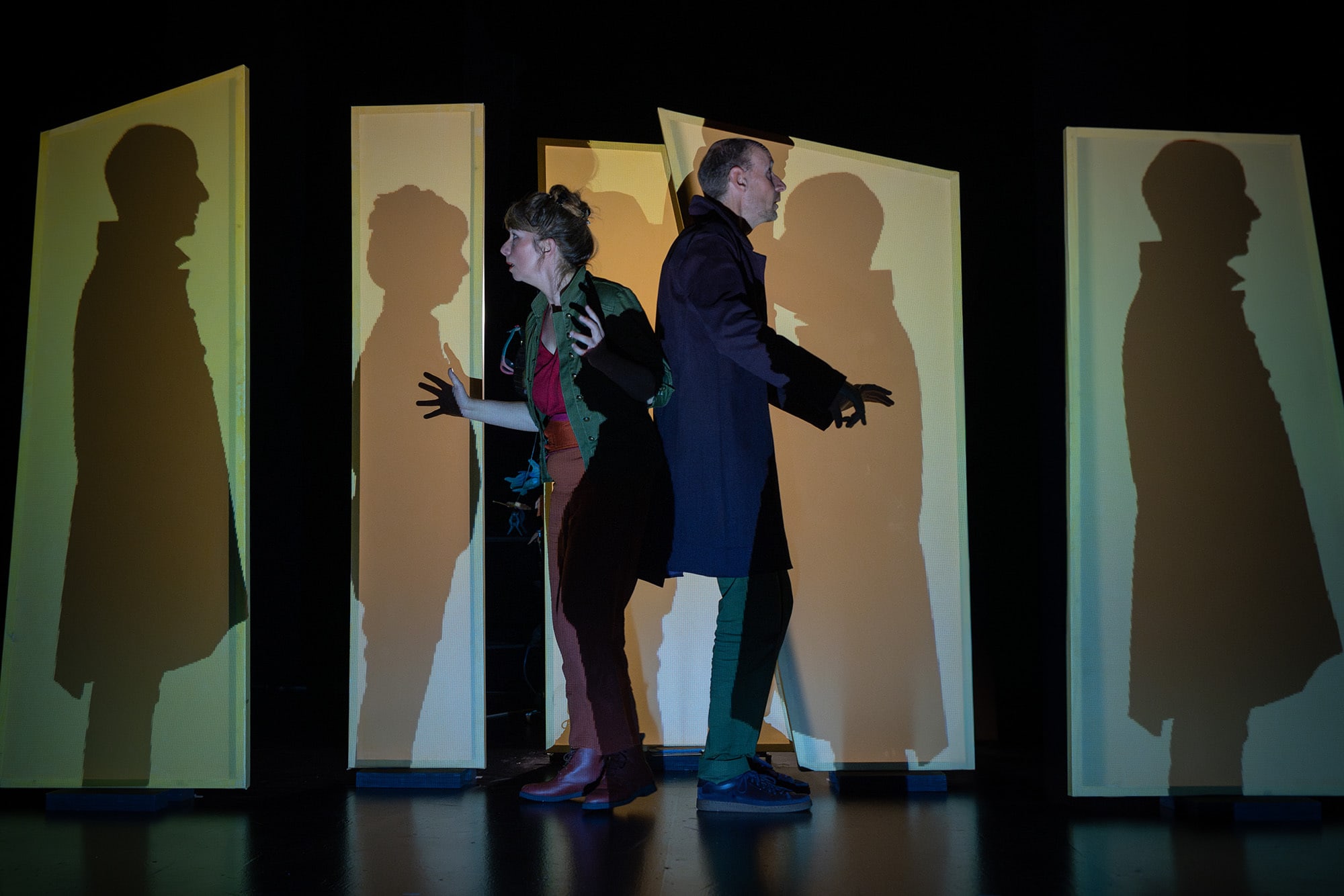Le spectacle se construit autour d’un jeu et des cartes tirées (pas tout à fait au hasard !!) donnent l’élan pour plonger dans des situations liées au groupe, au collectif, aux foules. Différentes séquences se succèdent, par le biais du théâtre d’objets, du théâtre d’ombres, de scènes gestuelles, de courts textes témoignent du point de vue de l’enfant, ou des émotions traversées par les personnages sur scène.