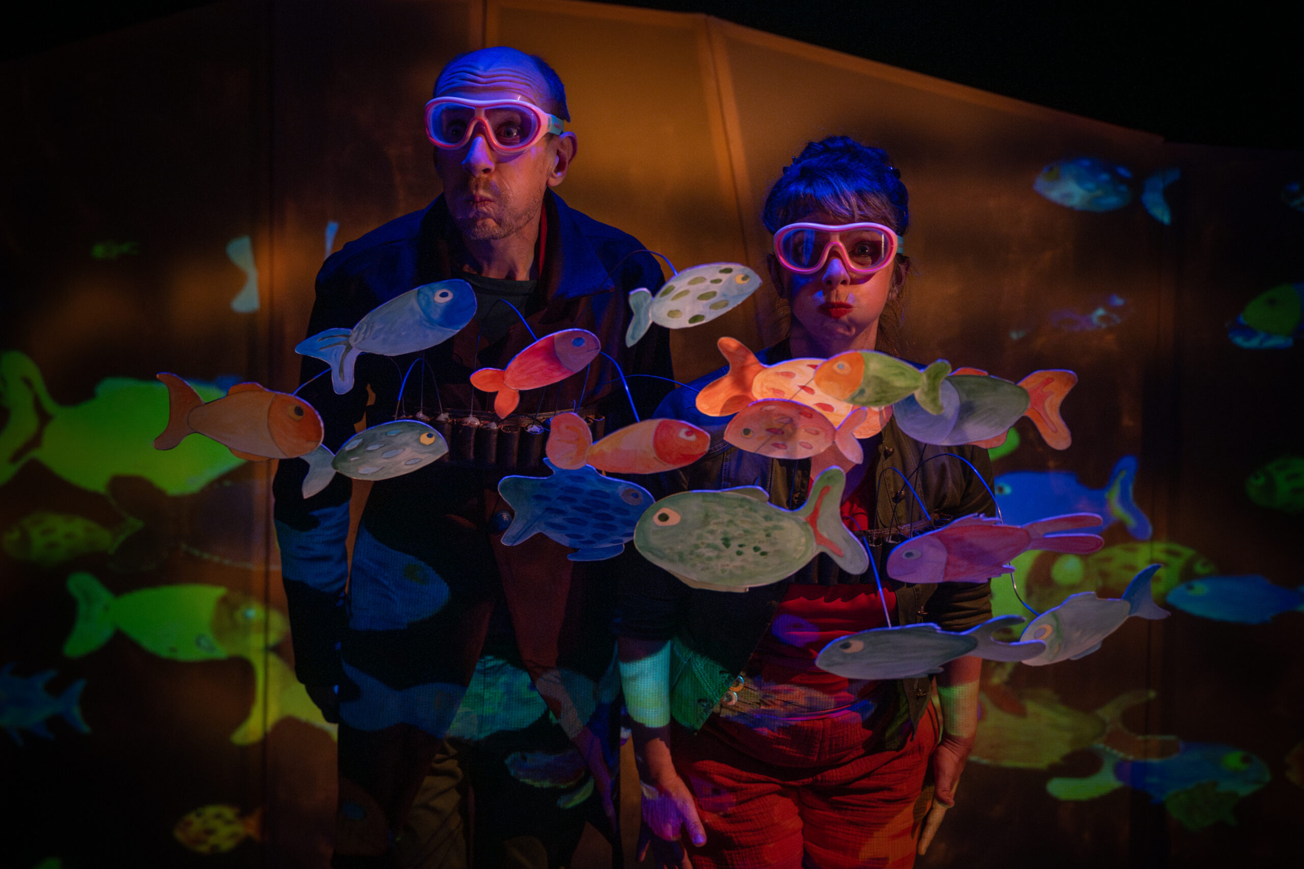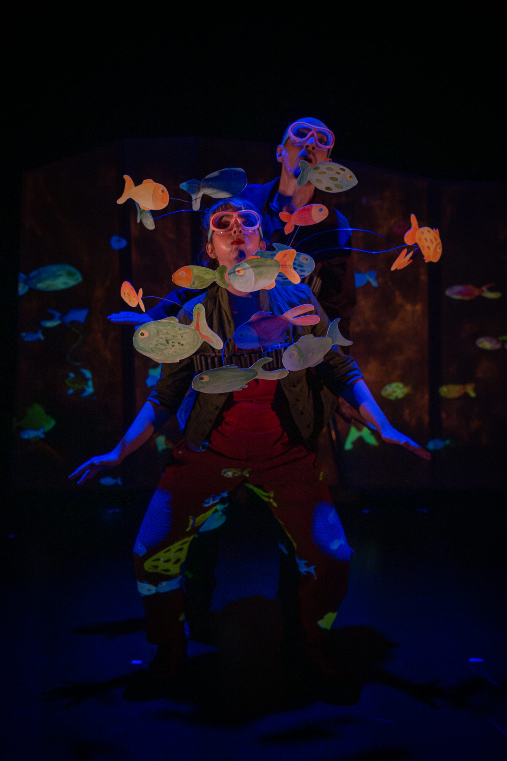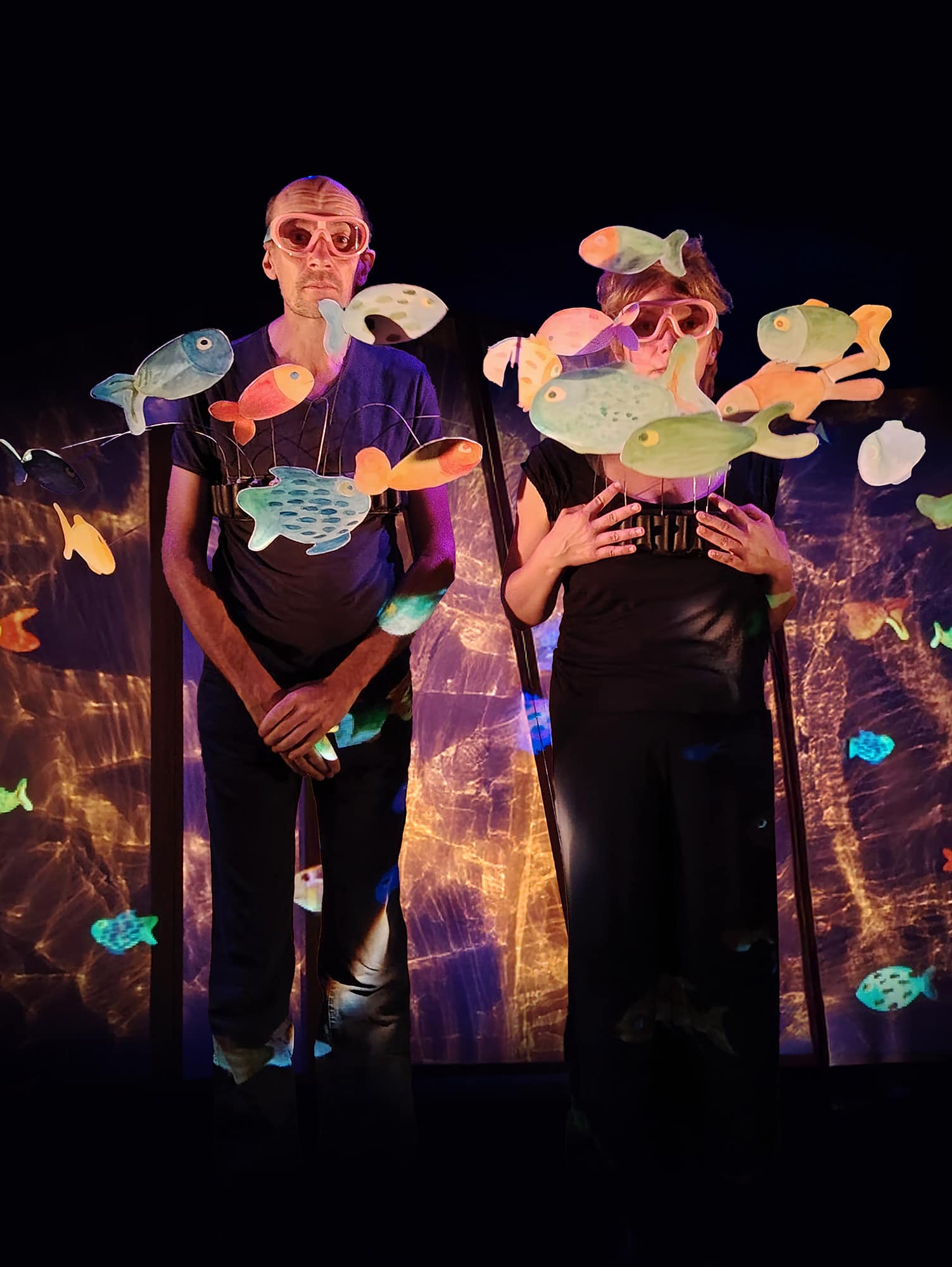Le spectacle se construit autour d’un jeu et des cartes tirées (pas tout à fait au hasard !!) donnent l’élan pour plonger dans des situations liées au groupe, au collectif, aux foules. Différentes séquences se succèdent, par le biais du théâtre d’objets, du théâtre d’ombres, de scènes gestuelles, de courts textes témoignent du point de vue de l’enfant, ou des émotions traversées par les personnages sur scène.